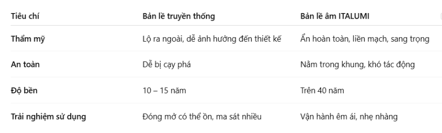 5. So sánh bản lề âm ITALUMI với bản lề truyền thống